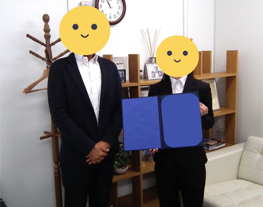 はじめに、石田代表取締役から内定証書を授与いただきました。